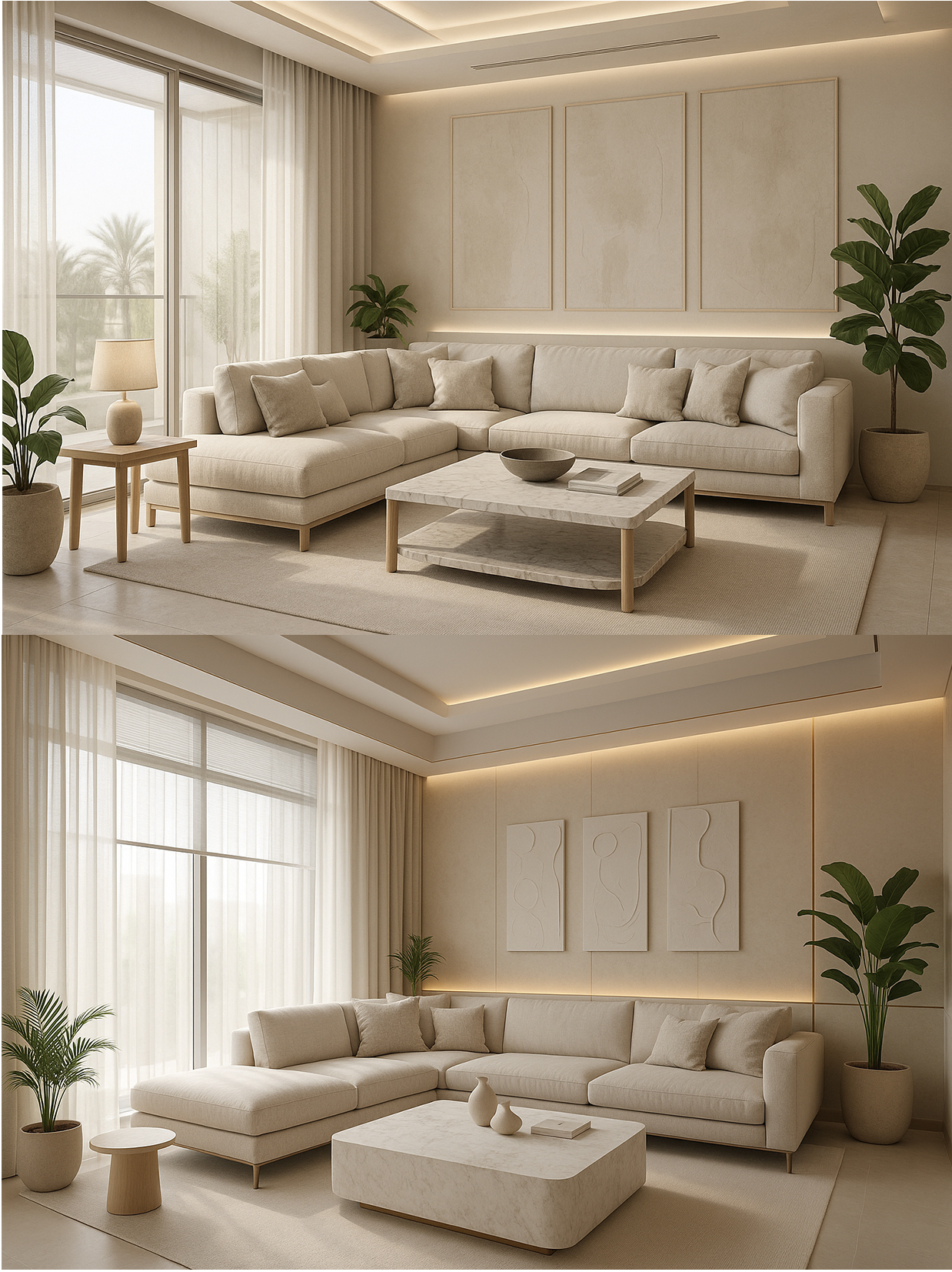 كل بيت أو محل له طابع خاص، وإحنا بنساعدك تعبر عنه فريق التصميم عندنا بيبدأ معاك من الصفر، يفهم احتياجك، ذوقك، ونمط حياتك، وبعدها يحول الأفكار لواقع جميل ومتناسق نستخدم خامات حديثة وأفكار مودرن تناسب أجواء الرياض وتخلي المكان مريح وأنيق في نفس الوقت.